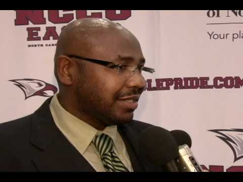 DURHAM, North Carolina - NCCU head football coach Henry Frazier III chats with play-by-play voice of the NCCU Sports Network Chris Hooks about his 2012 signing class. The Eagles had 27 student-athletes sign on the dotted line to become members of the NCCU football program.