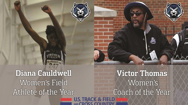 JEFFERSON CITY, Missouri -- Lincoln junior Diana Cauldwell is the NCAA Division II Women's Outdoor Field Athlete of the Year while Victor Thomas is the NCAA Division II Women's Outdoor Head Coach of the Year, the United States Track & Field and Cross Country Coaches Association announced on Thursday morning (May 31).