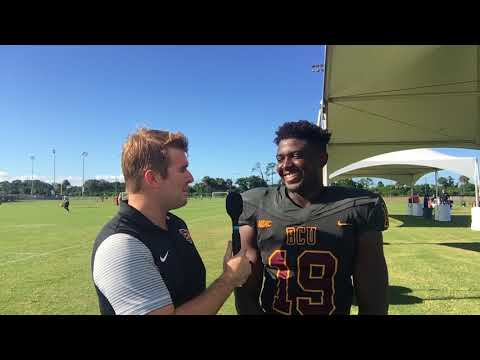 Dwayne Brown and Nicholas Roos were talking with Dean about the play of the offensive line. Elliott Miller and Keavon Mitchell spoke after practice with Chris Hayes of the Orlando Sentinel. Meanwhile, across the offensive practice field was Dan Ryan, Senior Writer and Historian for BCU Athletics. Ryan was talking with two new student-athletes for a piece he's working on with the #CaliCats connection that now, not only involves @BCUSoftball.