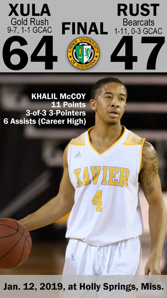 Xavier University of Louisiana men's basketballHOLLY SPRINGS, Mississippi — William Loyd continued his hot shooting, and Khalil McCoy didn't miss a shot Saturday in Xavier University of Louisiana's 64-47 Gulf Coast Athletic Conference men's basketball victory against Rust.